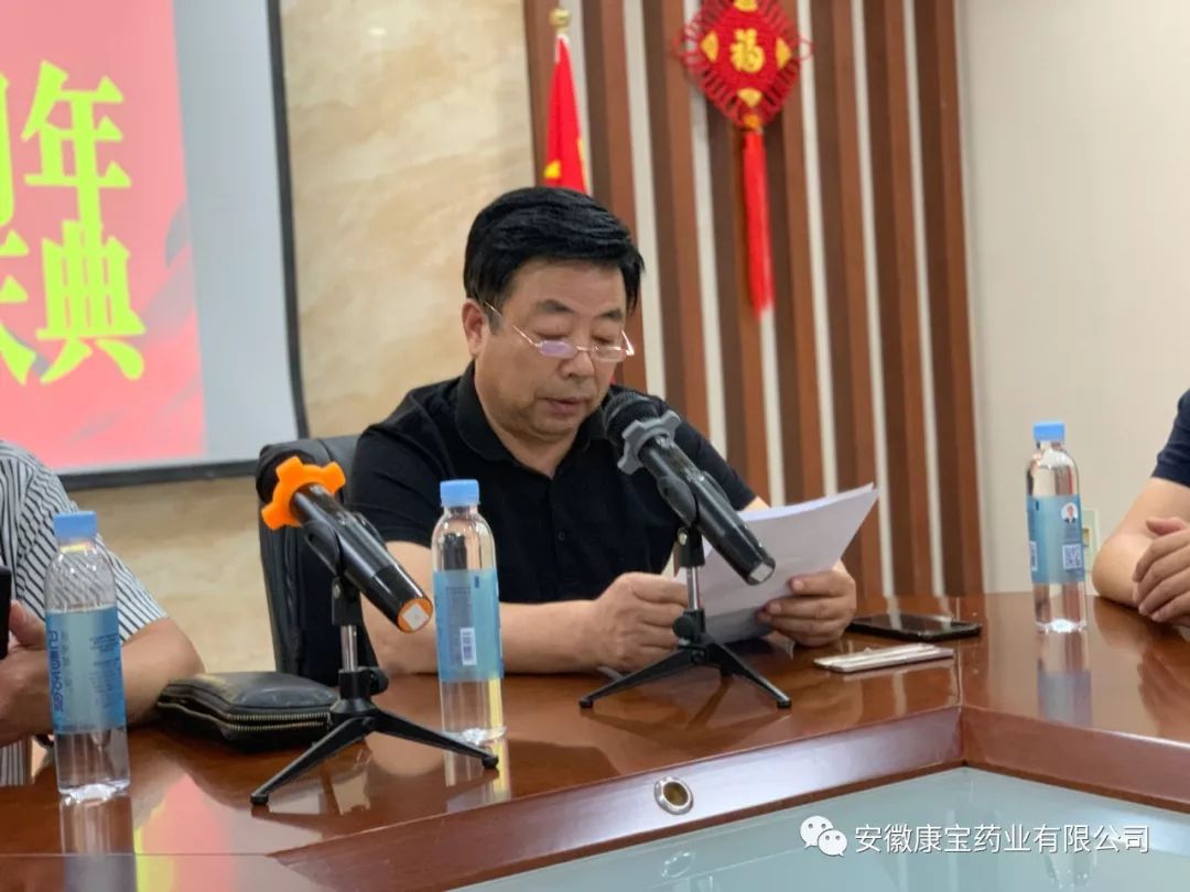 2019年9月10日下午,淮南東方醫(yī)院集團(tuán)全資子公司康寶藥業(yè)在公司會(huì)議中心舉行隆重而簡樸的五周年慶典活動(dòng)。東方醫(yī)院集團(tuán)黨委書記、董事長江鴻方,集團(tuán)董事、康寶藥業(yè)董事長朱興林出席了慶典。慶典由朱興林書記主持。