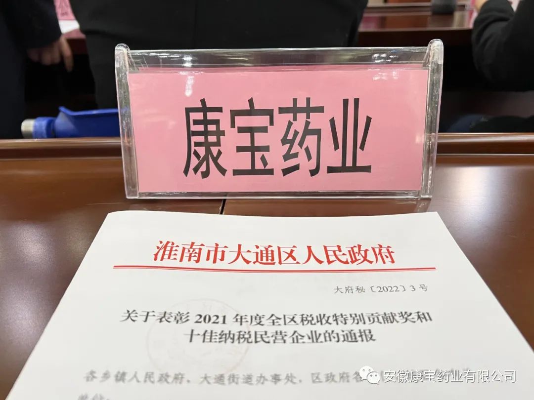 2月26日上午,大通區雙招雙引會議在區機關禮堂召開。會上,康寶藥業被大通區委、大通區政府授予“2021年度民營企業納稅獎”??祵毸帢I已連續三年榮獲此獎項。